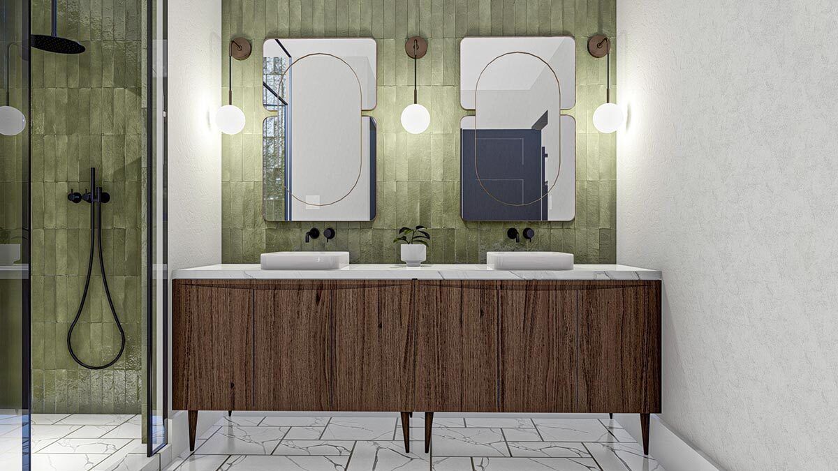 Modern timber log house plan with split bedrooms in Sun Prairie