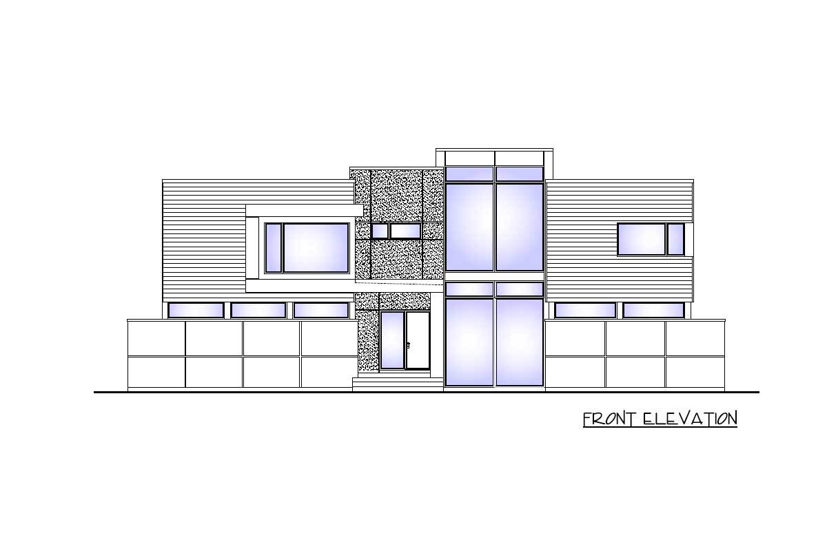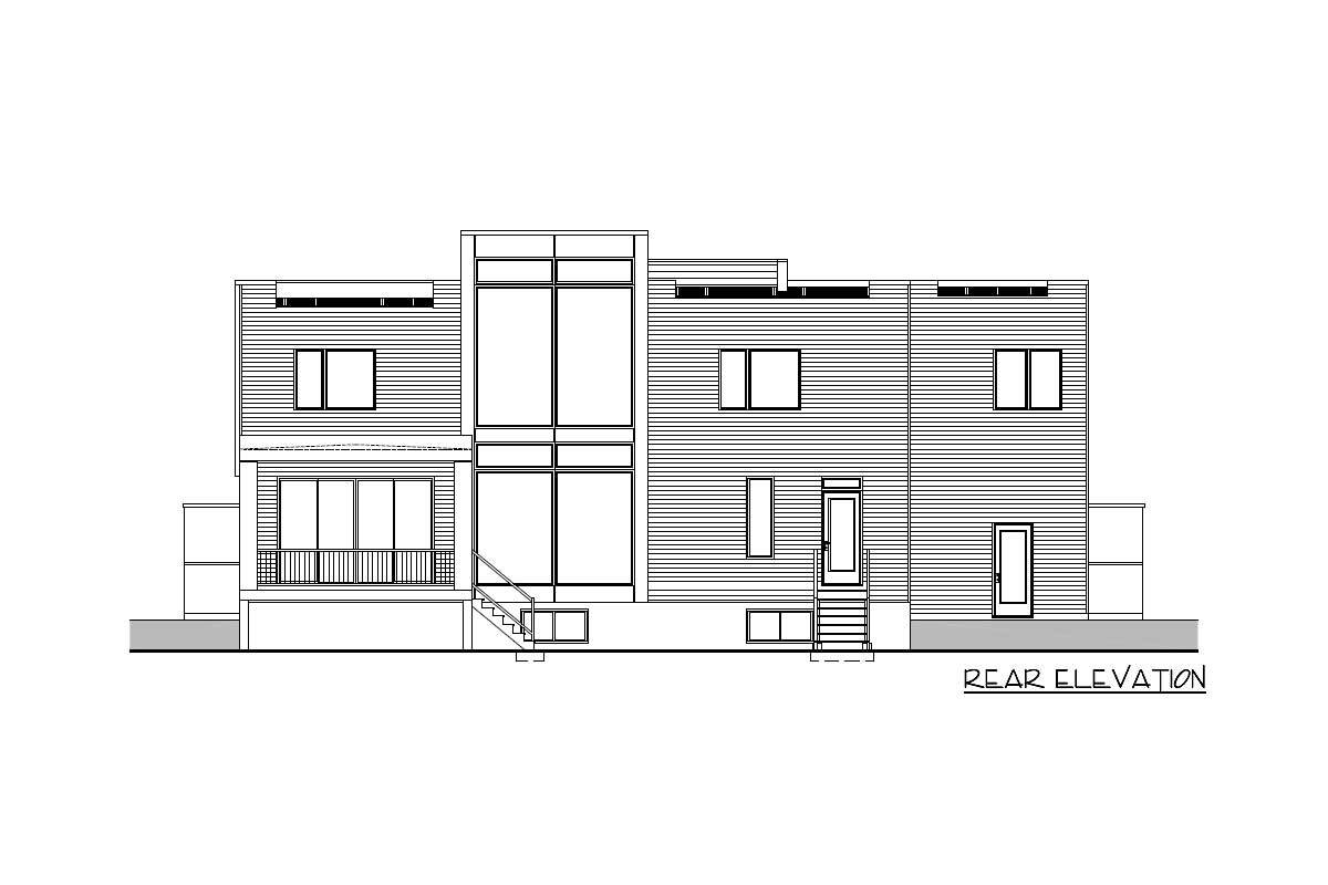 - In this stunning modern four-bedroom house plan, the staircase is highlighted by floor-to-ceiling windows at the front.