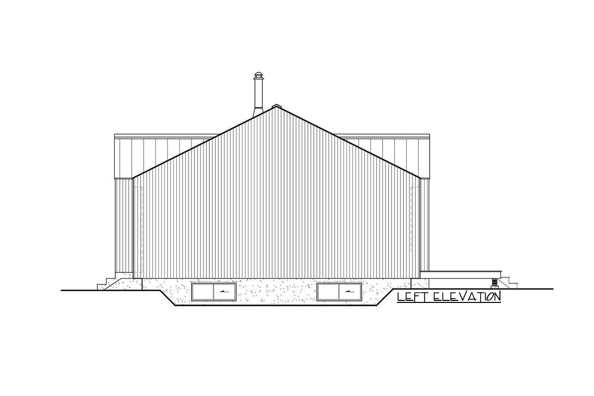 This 112 square meter ranch home plan has a modern feel to it thanks to corrugated metal roofing and emphasized external lines.